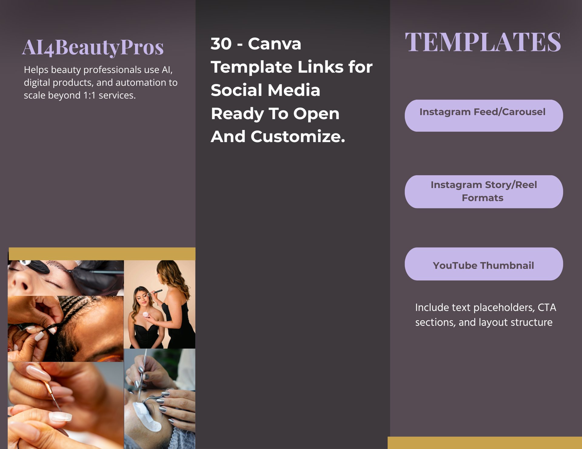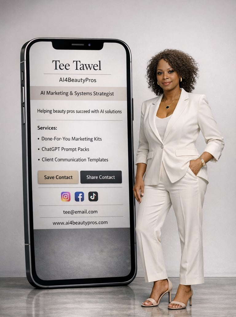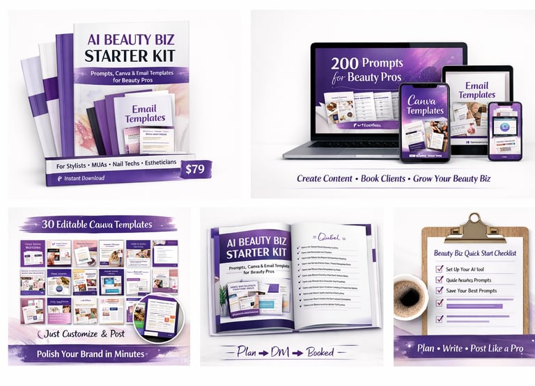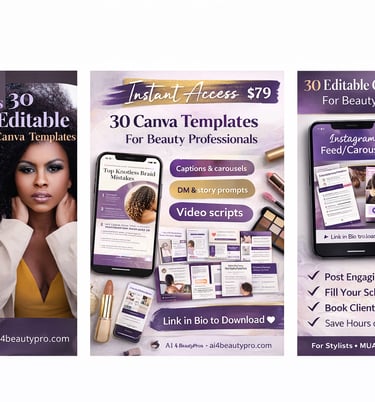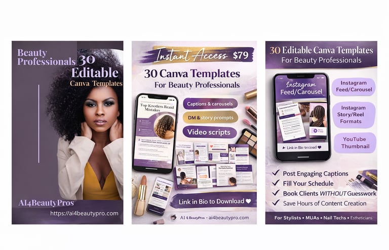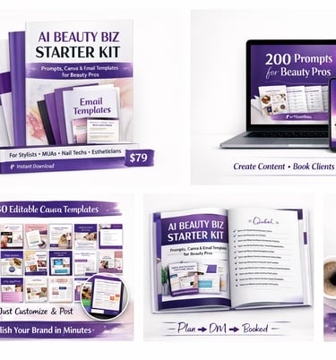 Helping beauty professionals (braiders, stylists, locticians, nail techs, MUAs, estheticians, lash/brow artists) use AI + ready-made marketing tools to: